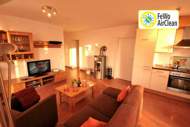 Dieses Feriendomizil ist mit dem FeWoAirClean - Siegel ausgezeichnet. Die Ferienwohnung ist mit einem Luftreiniger ausgestattet, welcher Viren und Aerosole aus der Luft entfernen kann. Die Wohnung ist auch per Fahrstuhl zu erreichen. Von Mai-September steht Ihnen kostenfrei am Strand ein Strandkorb zur Verfügung. Eine Bosch Tassimo Kaffeemaschine steht zur Verfügung.